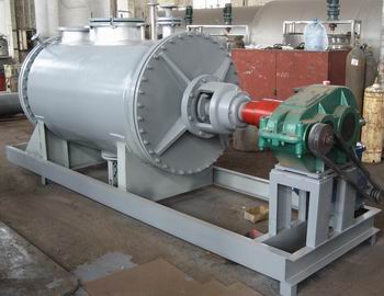 | 【真空耙式干燥機】 具有結(jié)構(gòu)簡單,操作方便,使用周期長,性能穩(wěn)定可靠,蒸汽耗量小,適用性能強,產(chǎn)品質(zhì)量好,特別適用于不耐高溫、易燃、調(diào)溫下易氧化的膏狀物料的干燥,該機經(jīng)用戶長期使用證明是一良好的干燥設(shè)備。原理:被干燥物料從殼體上方正中間加入,在不斷正反轉(zhuǎn)動的耙齒的攪拌下,物料軸向來回走動,與殼體內(nèi)壁接觸的表面不斷更新,受到蒸汽的間接加熱,耙齒的均勻攪拌,粉碎棒的粉碎,使物料表面水分更有利的排出,氣化的水分經(jīng)干式除塵器、濕式除塵器、冷凝器,從真空泵出口處放空。結(jié)構(gòu):真空耙式干燥機的主要部件 |